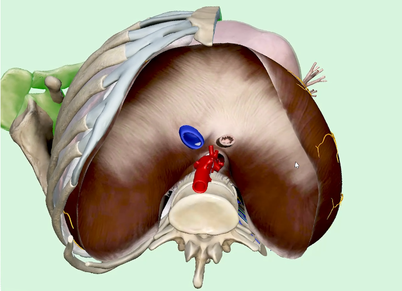- Vertebrale: causa l’abbassamento della cupola diaframmatica → movimento verticale, fondamentale per stimolare organi, visceri, vasi e nervi
